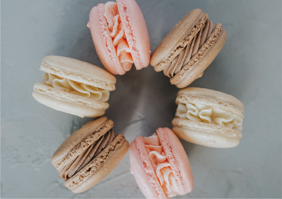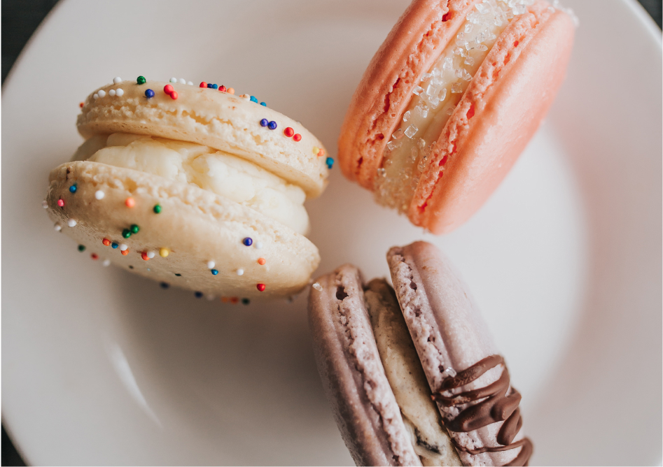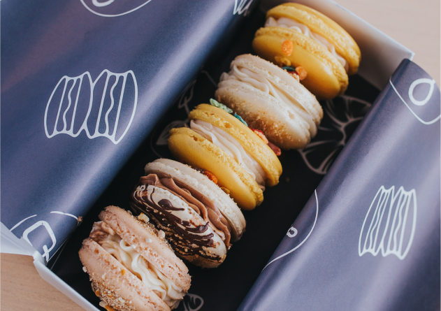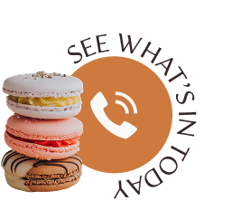 Indulge in a little luxury every Friday with our delicate, hand-crafted French macarons. Each week, we pick a new theme and dream up three unique macaron flavors to match. These flavors are released every Friday and sold through out the weekend until we sell out. Give us a call to have some set aside or come early- they go quick!