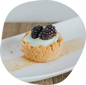 Oat flour crust filled with zesty key lime mousse. Topped with fresh blackberries.